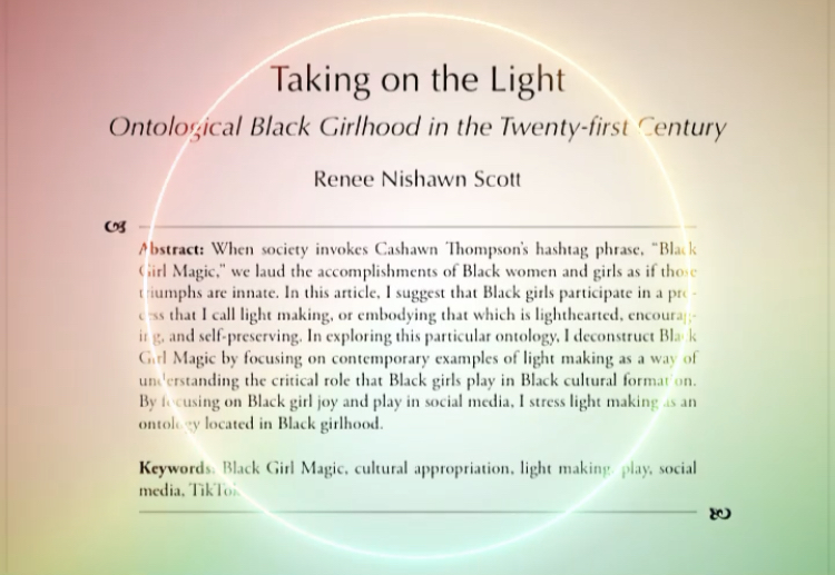 “Taking on the Light: Ontological Black Girlhood in the 21st Century.” Girlhood Studies: An Interdisciplinary Journal.